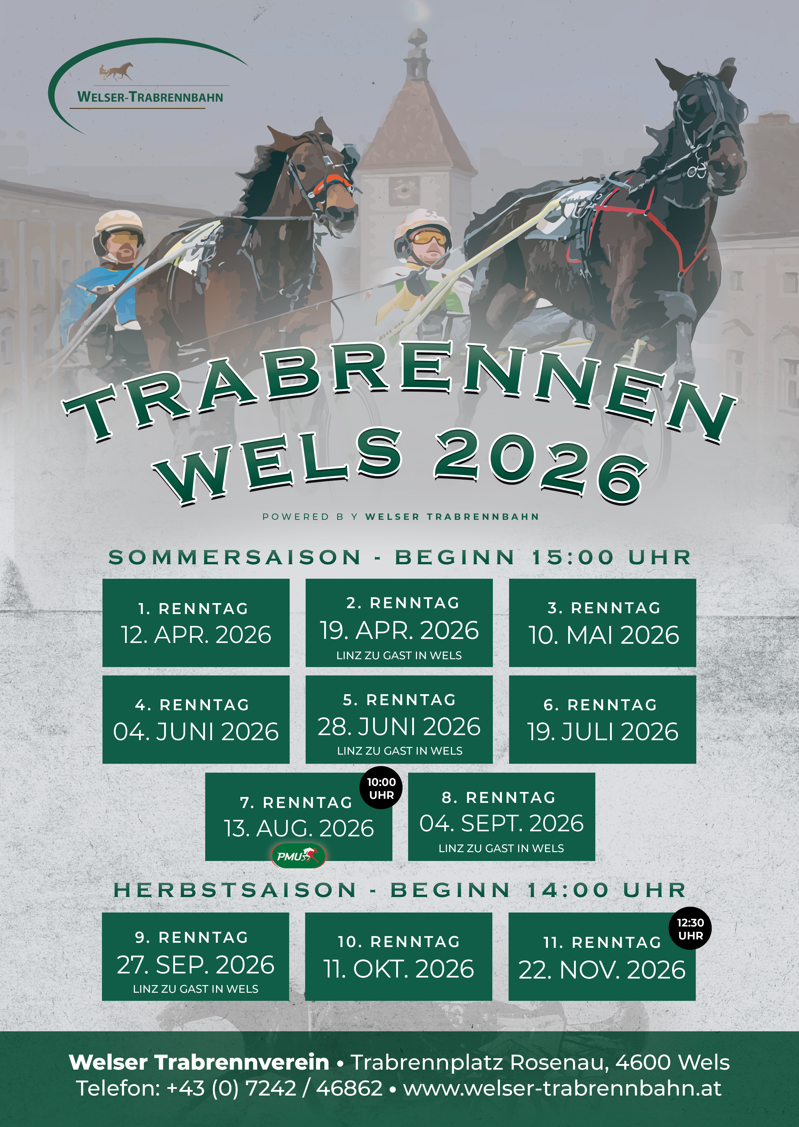 Erleben Sie spannende Trabrennen mitten im Herzen von Wels. Ein perfekter Ausflug für die ganze Familie.