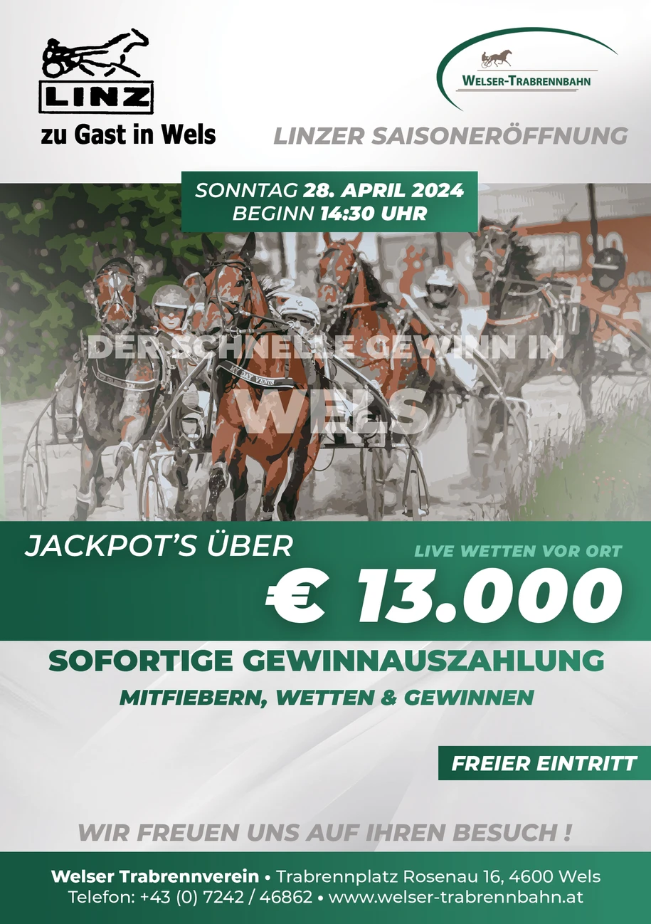 Der Linzer Trabrennverein eröffnet am Sonntag - 28. April 2024 um 14:30 Uhr - mit dem zweiten Renntag die Linzer Rennsaison auf der Welser Trabrennbahn.