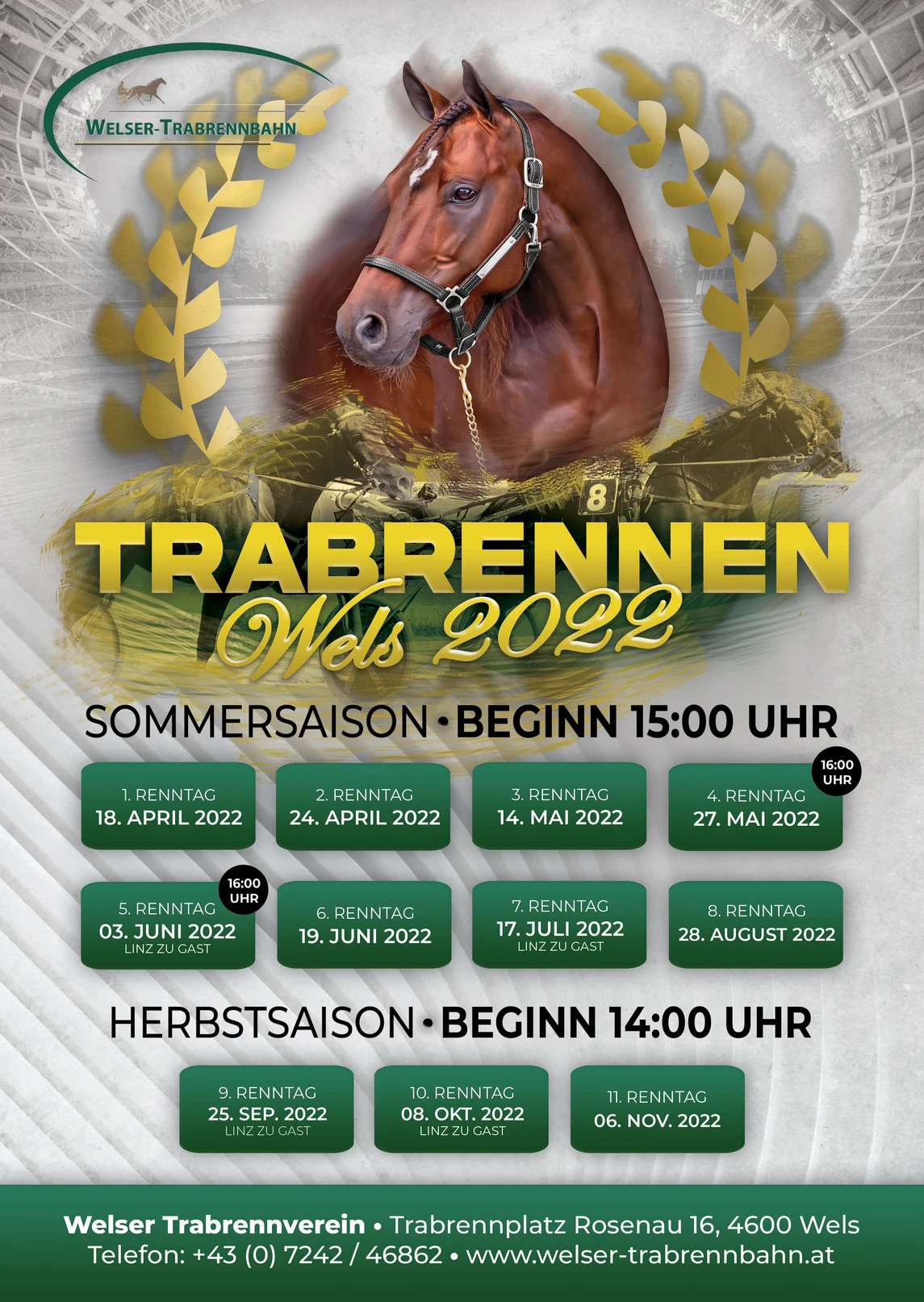 Der Welser Trabrennverein eröffnet am Ostermontag - 18. April 2022 um 15:00 Uhr - mit dem ersten Renntag die Sommersaison.