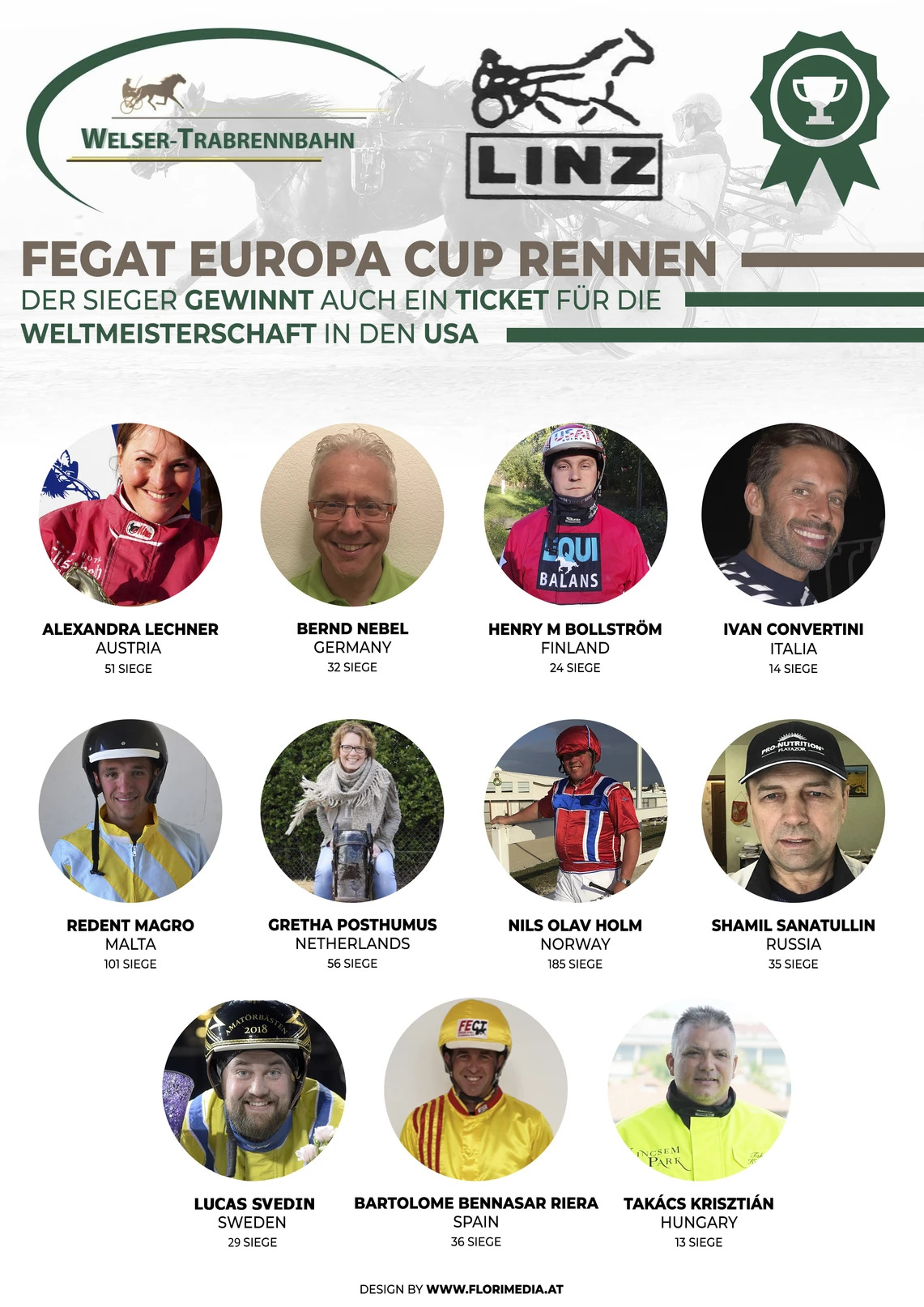 Für die Teilnehmer am FEGAT Europa Cup gilt: • Keine Box- und Nenngebühr • Dotation: 1.760 € : 600/300/160/120/100 (pro Rennen 11 Teilnehmer)